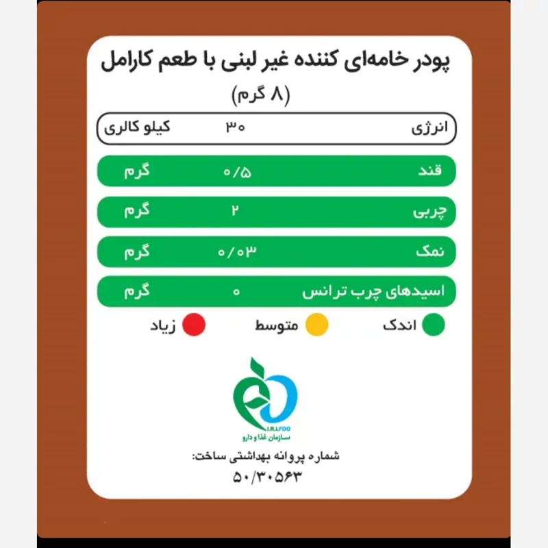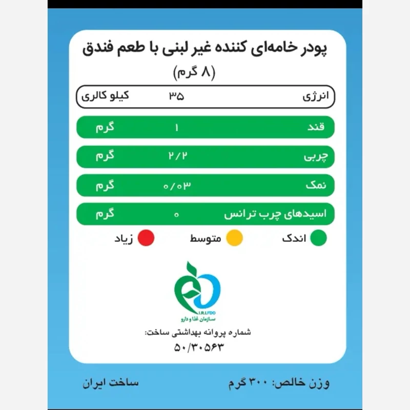 کریمر غیرلبنی با پودر شیر فندق بدون شکر(شیرین شده با استویا)پپتینا