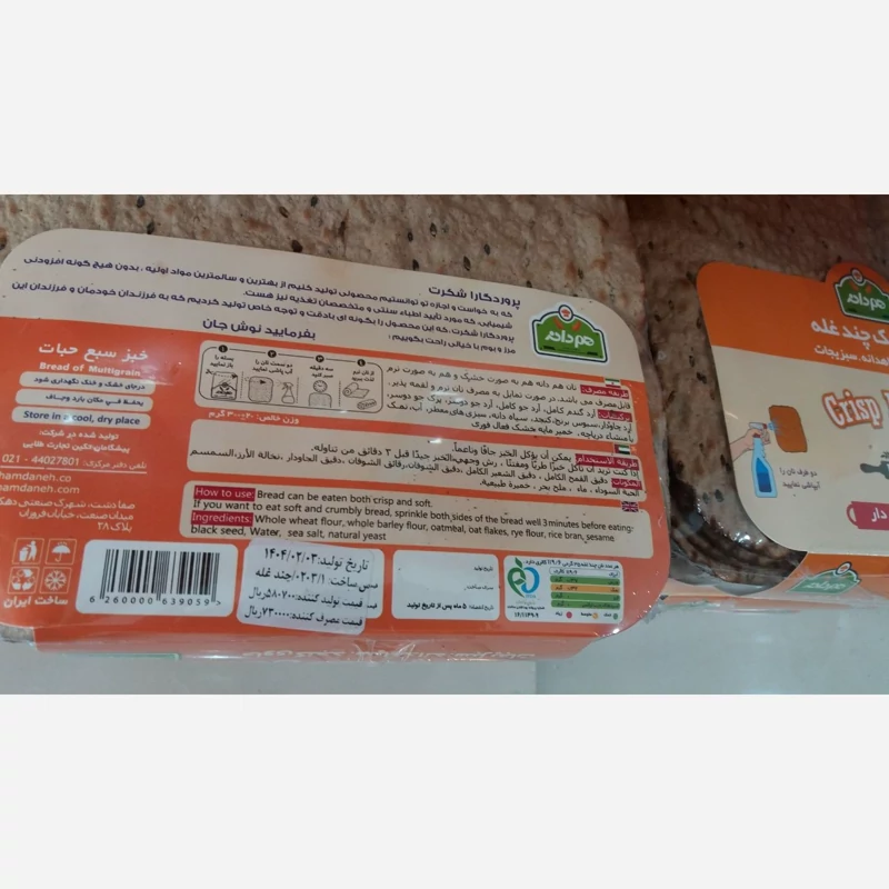 ♻️ترکیبات نان هفت غله: آرد گندم کامل آرد جو کامل آرد جو دوسر پرک جو دوسر آرد چاودار سبوس برنج کنجد سیاهدانه آب نمک با منشاء دریاچه مخمر طبیعی
