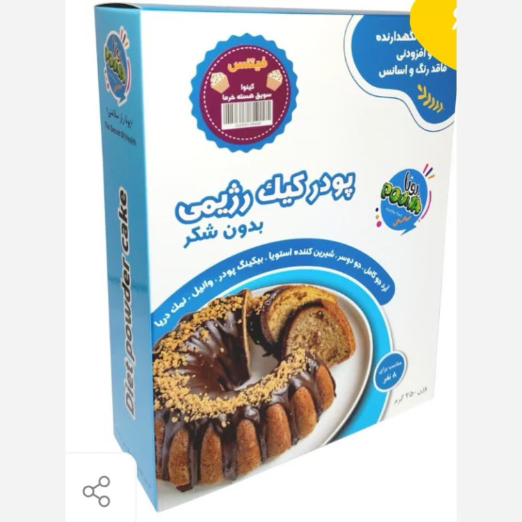پودر آماده کیک فیتنس(کینوا و هسته خرما) رژیمی پونا(بدون شکر،رنگ،اسانس و مواد نگهدارنده)شیرین با استویا برای 8نفر