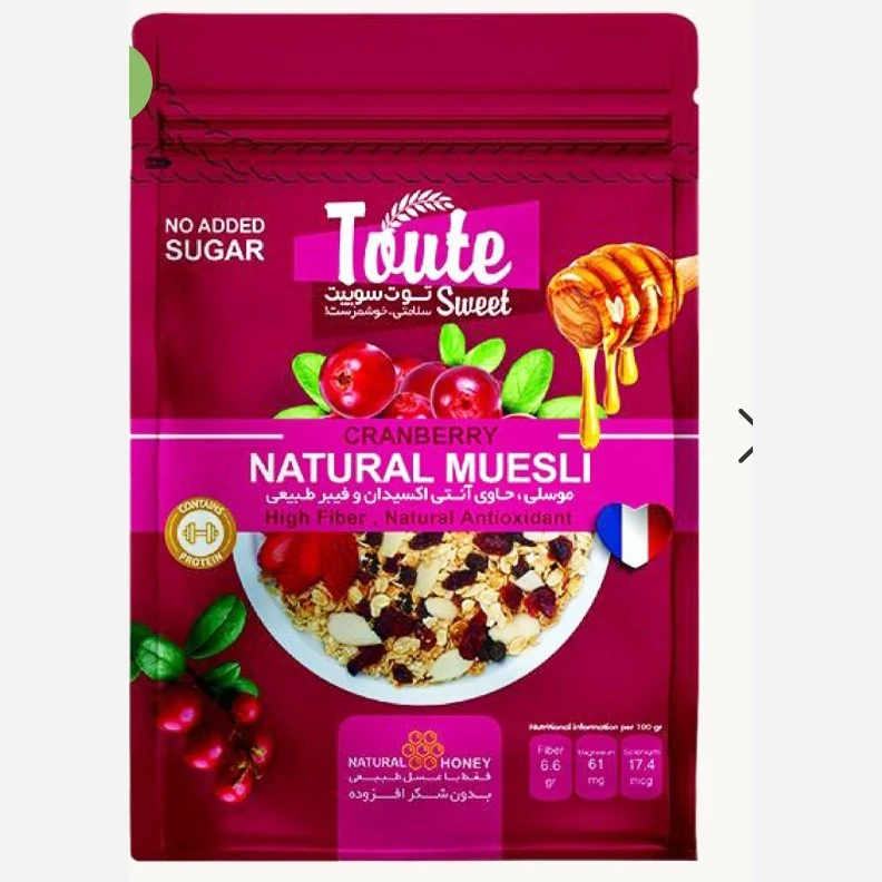 گرانول موسلی بدون شکر(غلات صبحانه رژیمی) توت سوییت